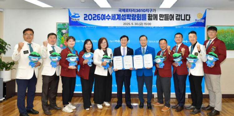 ¿©¼ö½Ã(½ÃÀå Á¤±â¸í)¿Í ±¹Á¦·ÎŸ¸®3610Áö±¸(ÃÑÀç ±èöÀç)°¡ 2026¿©¼ö¼¼°è¼¶¹Ú¶÷ȸ ¼º°ø°³ÃÖ¸¦ À§ÇÑ »óÈ£ Çù·ÂÀ» ´ÙÁüÇϸç Áö³ 30ÀÏ ¾÷¹«Çù¾àÀ» ü°áÇß´Ù.<¿©¼ö½Ã>