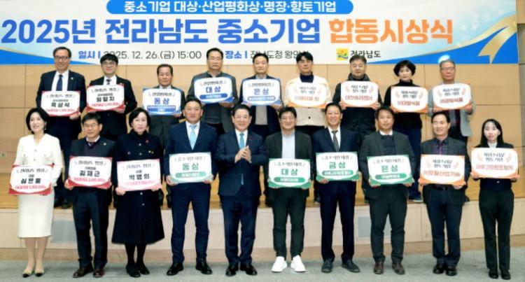 ±è¿µ·Ï Àü¶ó³²µµÁö»ç°¡ 26ÀÏ µµÃ» ¿ÕÀνǿ¡¼ ¿¸° 2025³â Áß¼Ò±â¾÷ ÇÕµ¿ ½Ã»ó½Ä¿¡¼ Àüü ¼ö»óÀÚµé°ú ±â³äÃÔ¿µÀ» Çϰí ÀÖ´Ù.<Àü¶ó³²µµ>