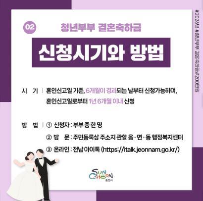 [±¹¹Îȯ°æ¹æ¼Û °û°è¼ö µ¿ºÎ±Ç ÃëÀ纻ºÎÀå] ¼øÃµ½Ã´Â û³â¼¼´ëÀÇ °áÈ¥ Ãʱ⠰æÁ¦Àû ºÎ´ãÀ» ¿ÏÈÇÏ°í ¾ÈÁ¤ÀûÀÎ Áö¿ª Á¤ÂøÀ» Áö¿øÇϱâ À§ÇØ ¡¸2026³â û³â ºÎºÎ °áÈ¥ÃàÇÏ±Ý Áö¿ø»ç¾÷¡¹À» ½ÃÇàÇϰí, ºÎºÎ´ç 200¸¸ ¿øÀÇ °áÈ¥ÃàÇϱÝÀ» Áö±ÞÇÑ´Ù°í ¹àÇû´Ù.