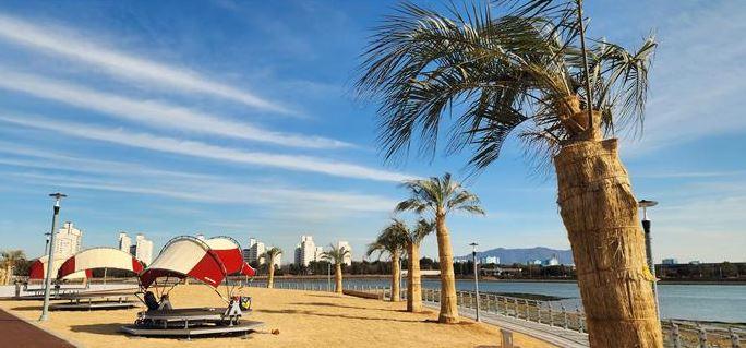 ÇØº¯¿¡´Â 28±×·çÀÇ ¾ßÀÚ¼ö°¡ ½ÄÀçµÅ À̱¹ÀûÀÎ °æ°üÀ» ¿¬ÃâÇϸç, ij³ëÇÇ¿Í ÆÄ°í¶ó µî ÈÞ½Ä ½Ã¼³À» ¼³Ä¡ÇØ ÀÌ¿ë ÆíÀǸ¦ ³ô¿´´Ù. ƯÈ÷ Á¶¼ö°£¸¸ÀÇ Â÷¿¡ µû¶ó °¹¹ú°ú ¼ö¸éÀÌ µå·¯³ª´Â ±¤¾ç¸¸ ƯÀ¯ÀÇ ÀÚ¿¬°æ°ü°ú ¾ÆÆÄÆ® ´ÜÁö, ¹«Áö°³´Ù¸®, À̼ø½Å´ë±³°¡ ¾î¿ì·¯Á® ÀÚ¿¬°ú µµ½Ã°¡ °øÁ¸ÇÏ´Â °æ°üÀ» Çü¼ºÇÑ´Ù.