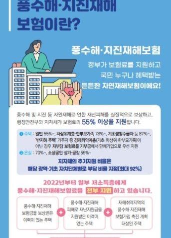 dz¼öÇØ¡¤ÁöÁøÀçÇØº¸ÇèÀº 2008³âºÎÅÍ ½ÃÇàÇÑ ±¹°¡Á¤Ã¥ º¸ÇèÀÌ´Ù. ÅÂdz, È«¼ö, È£¿ì, °Ç³, dz¶û, ÇØÀÏ, ´ë¼³, ÁöÁø, 8°³ ÀçÇØ¸¦ º¸ÀåÇÑ´Ù. ÁÖÅá¤¿Â½Ç ¼ÒÀ¯ÀÚ¿Í ¼¼ÀÔÀÚ, »ó°¡³ª °øÀåÀ» ¼ÒÀ¯ÇÑ ¼Ò»ó°øÀÎÀ̶ó¸é ´©±¸³ª °¡ÀÔÇÒ ¼ö ÀÖ´Ù.