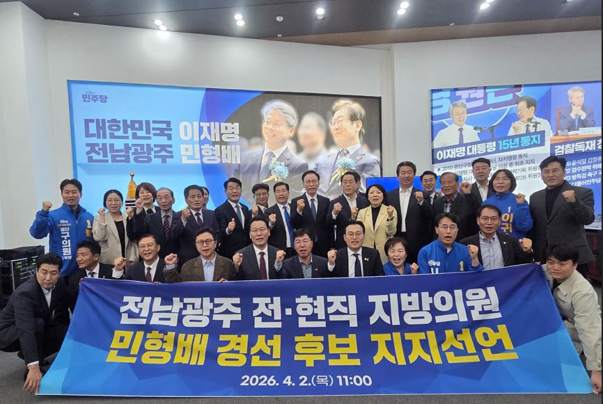 [±¹¹Îȯ°æ¹æ¼Û ¼Û±Ç¼® ±âÀÚ] Àü³²±¤ÁÖ Àü¡¤ÇöÁ÷ Áö¹æÀÇ¿ø 191¸íÀÌ ´õºÒ¾î¹ÎÁÖ´ç Àü³²±¤ÁÖÅëÇÕÆ¯º°½ÃÀå °æ¼±Èĺ¸ÀÎ ¹ÎÇü¹è ±¹È¸ÀÇ¿ø(±¤ÁÖ ±¤»ê±¸À»)¿¡ ´ëÇÑ ÁöÁö¸¦ 2ÀÏ °ø½Ä ¼±¾ðÇß´Ù.
