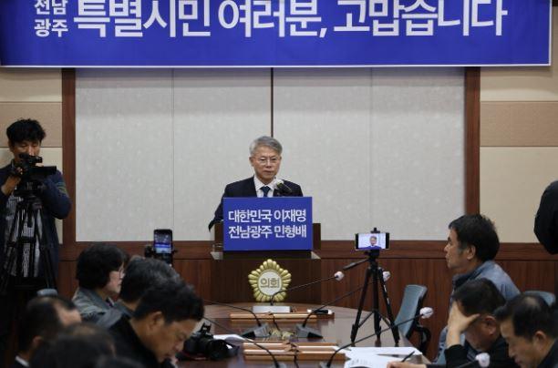[±¹¹Îȯ°æ¹æ¼Û ¼Û±Ç¼® ±âÀÚ] ´õºÒ¾î¹ÎÁÖ´ç Àü³²±¤ÁÖÅëÇÕÆ¯º°½ÃÀå °æ¼± Èĺ¸ÀÎ ¹ÎÇü¹è ±¹È¸ÀÇ¿ø(±¤ÁÖ ±¤»ê±¸À»)ÀÌ 7ÀÏ ¿ÀÀü 11½Ã ±¤ÁÖ½ÃÀÇȸ¿¡¼ ±âÀÚȸ°ßÀ» ¿°í, ÅëÇÕÆ¯º°½Ã ÇàÁ¤ ¿î¿µ ±¸»ó°ú °á¼± ½Â¸® ÀÇÁö¸¦ ¹àÇû´Ù.