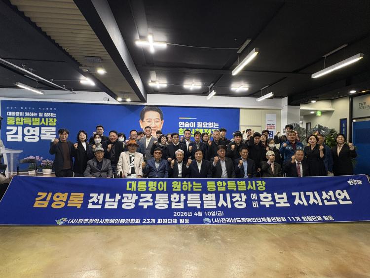 ±¤ÁÖ¡¤Àü³² Àå¾ÖÀδÜüµéÀÌ ±è¿µ·Ï Àü³²¡¤±¤ÁÖ ÅëÇÕÆ¯º°½ÃÀå ¿¹ºñÈĺ¸¿¡ ´ëÇÑ °ø½Ä ÁöÁö¸¦ ¼±¾ðÇß´Ù/±¤ÁÖ±¤¿ª½ÃÀå¾ÖÀÎÃÑ¿¬ÇÕ Á¦°ø