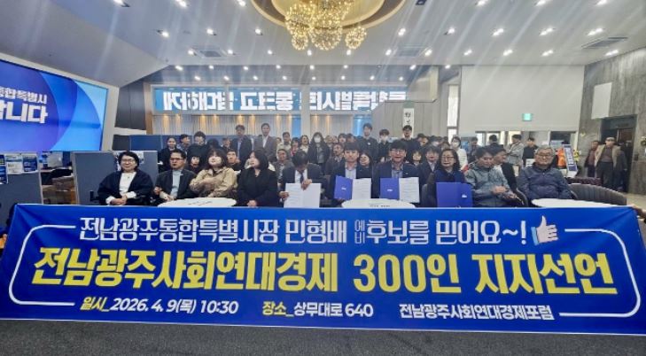 [±¹¹Îȯ°æ¹æ¼Û ¼Û±º¼® ±âÀÚ] Àü³²¡¤±¤ÁÖ Áö¿ªÀÇ »çȸÀû±â¾÷, Çùµ¿Á¶ÇÕ, ¸¶À»±â¾÷ µî »çȸ¿¬´ë°æÁ¦ ºÐ¾ß Á¾»çÀÚ 300¸íÀÌ ´õºÒ¾î¹ÎÁÖ´ç Àü³²±¤ÁÖÅëÇÕÆ¯º°½ÃÀå °æ¼± Èĺ¸ÀÎ ¹ÎÇü¹è ±¹È¸ÀÇ¿ø(±¤ÁÖ ±¤»ê±¸À»)¿¡ ´ëÇÑ °ø½Ä ÁöÁö¸¦ ¼±¾ðÇß´Ù.